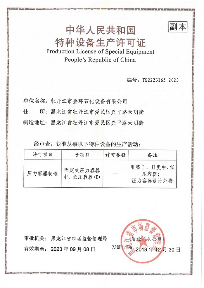 Mudanjiang Jinhuan Petrochemical Equipment CO.,LTD 牡丹江市金環(huán)石化設(shè)備有限公司 版權(quán)所有 www.bjhfcq.com