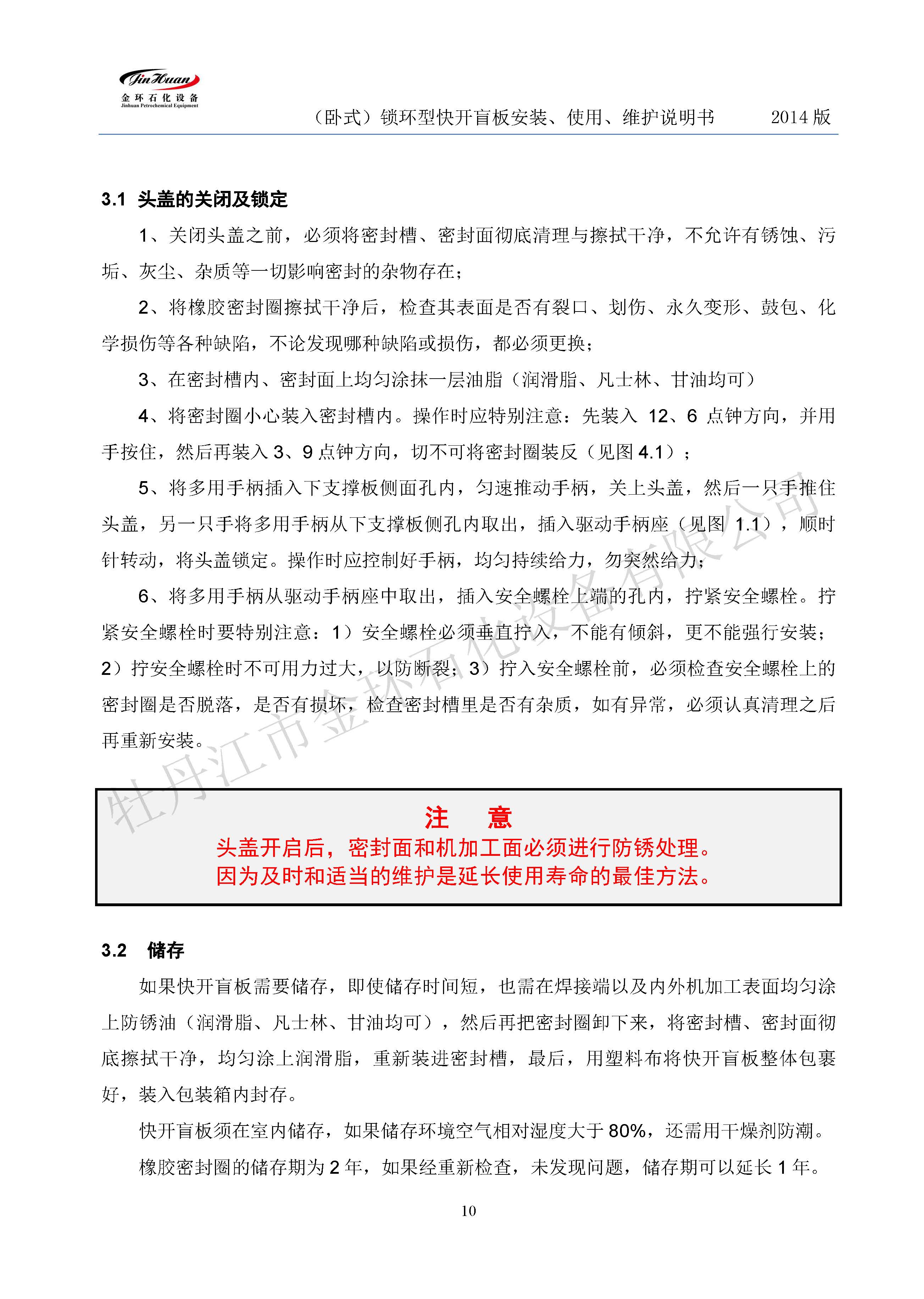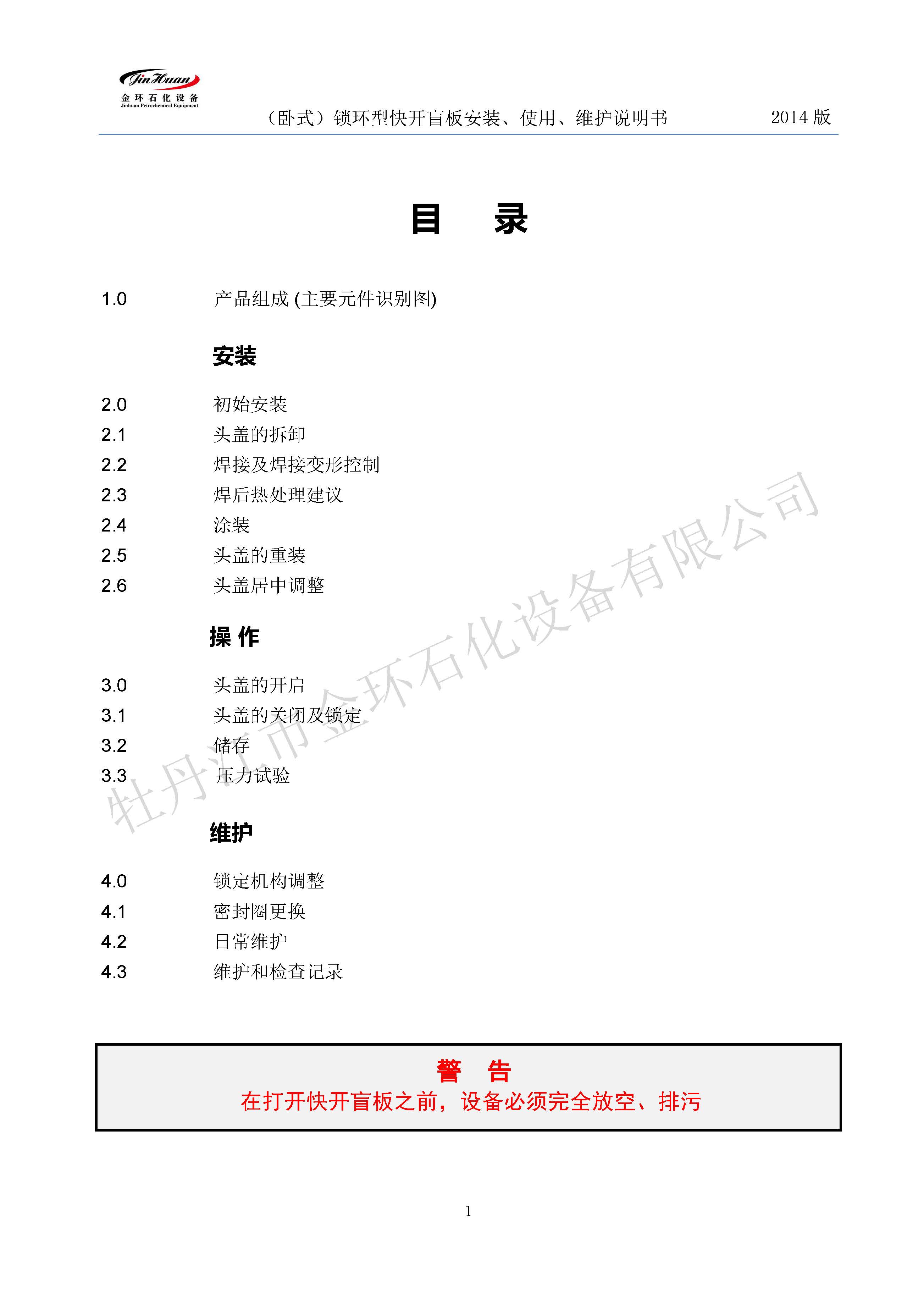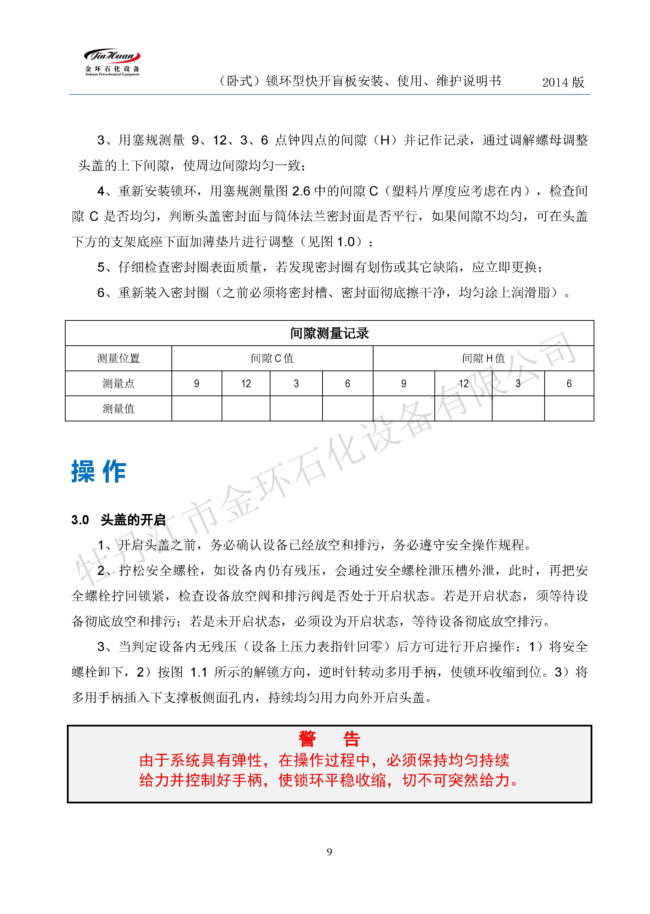 鎖環(huán)臥式快開盲板說(shuō)明書