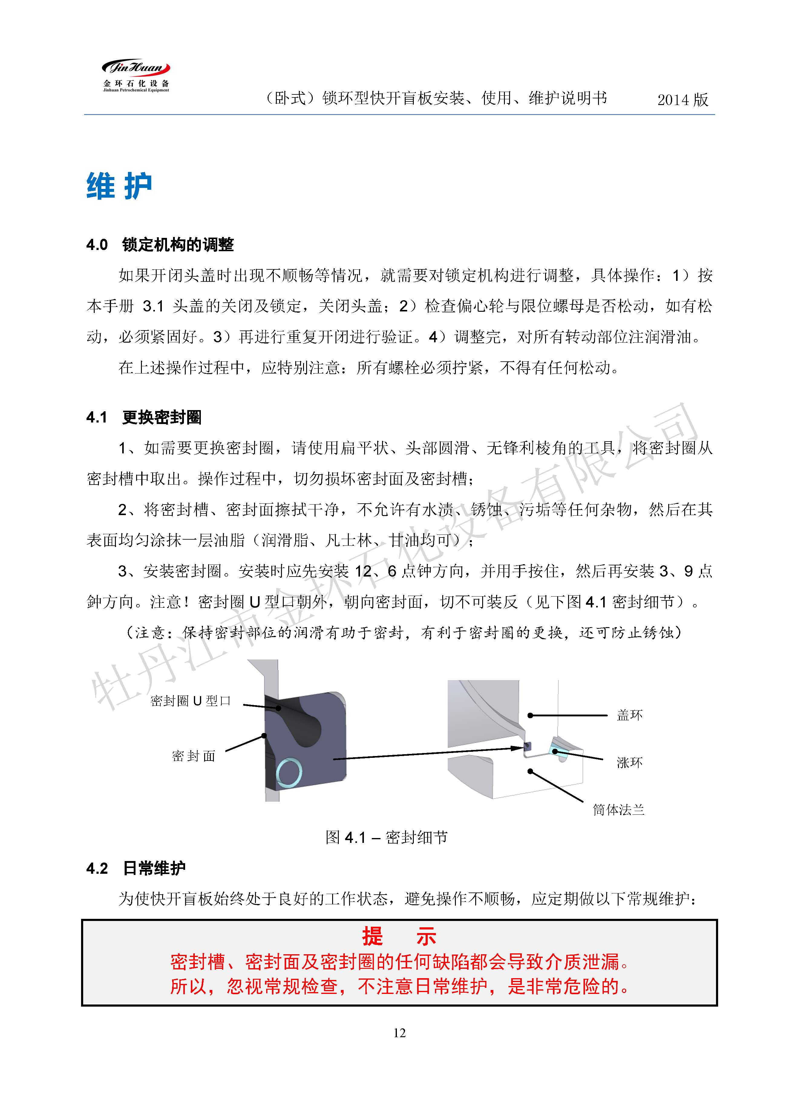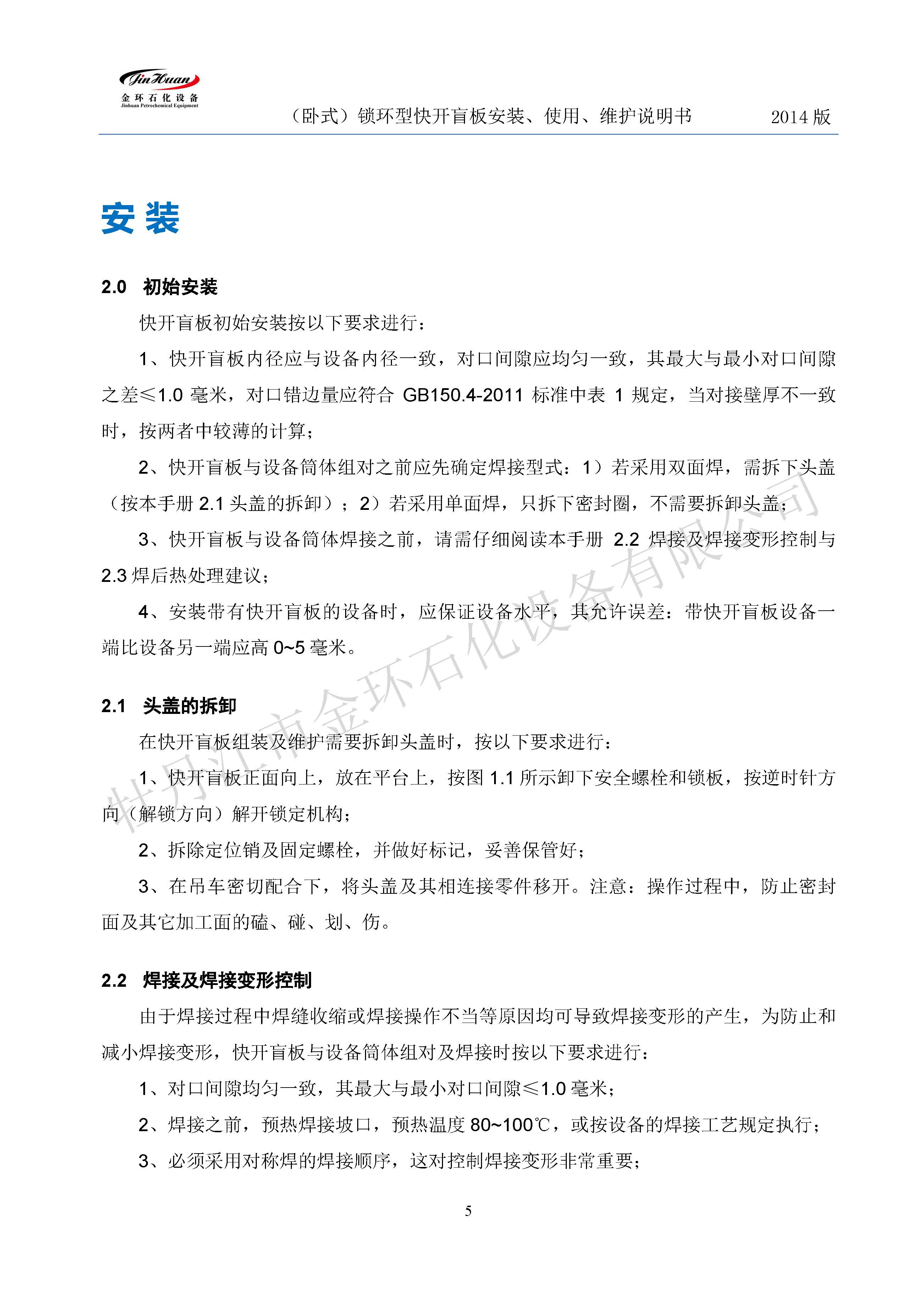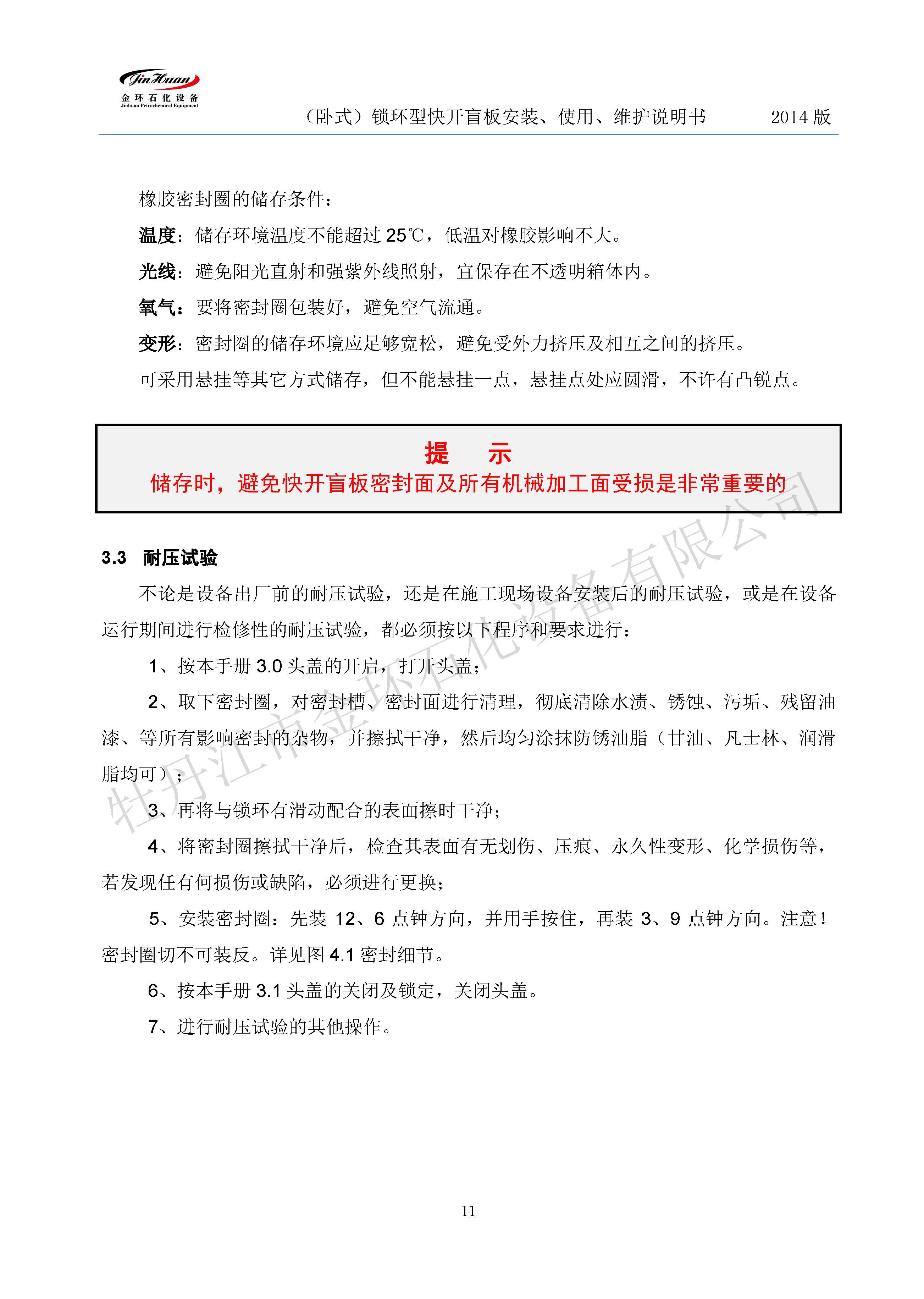 鎖環(huán)臥式快開盲板說(shuō)明書